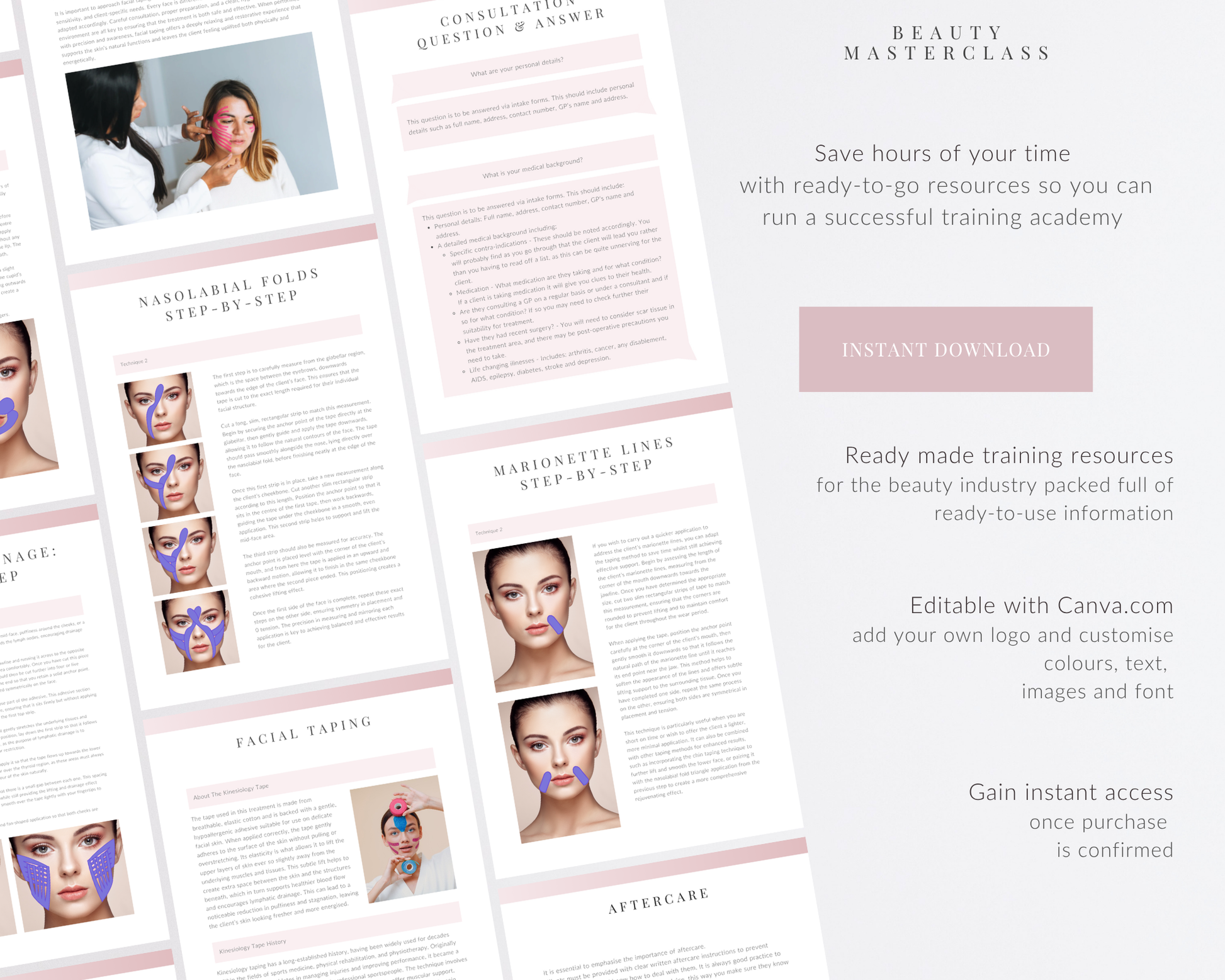 Transform your training academy with our premium editable beauty training resources, thoughtfully designed for beauty trainers, academies, and professionals. Our fully customisable Canva templates are the ultimate solution for creating professional, high-quality training materials, including manuals, worksheets, exams, and certificates. Each resource is easy to edit, instantly downloadable, and ready to personalise, helping you save time while presenting a polished and professional brand image.