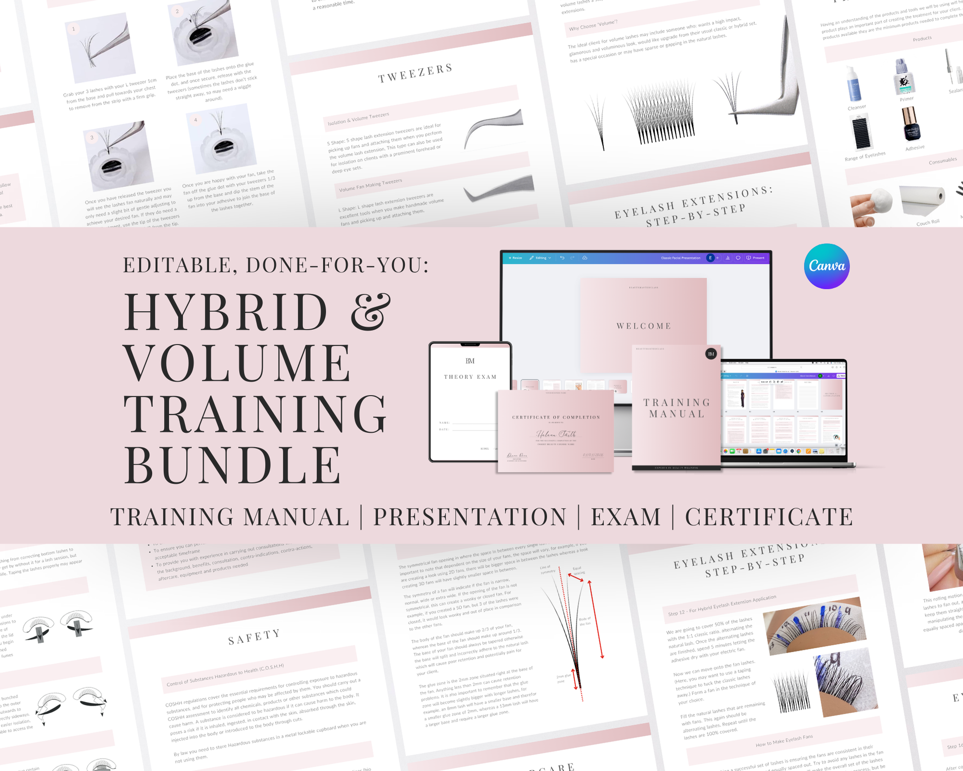 Hybrid and Volume Lash Extension Editable Training Bundle