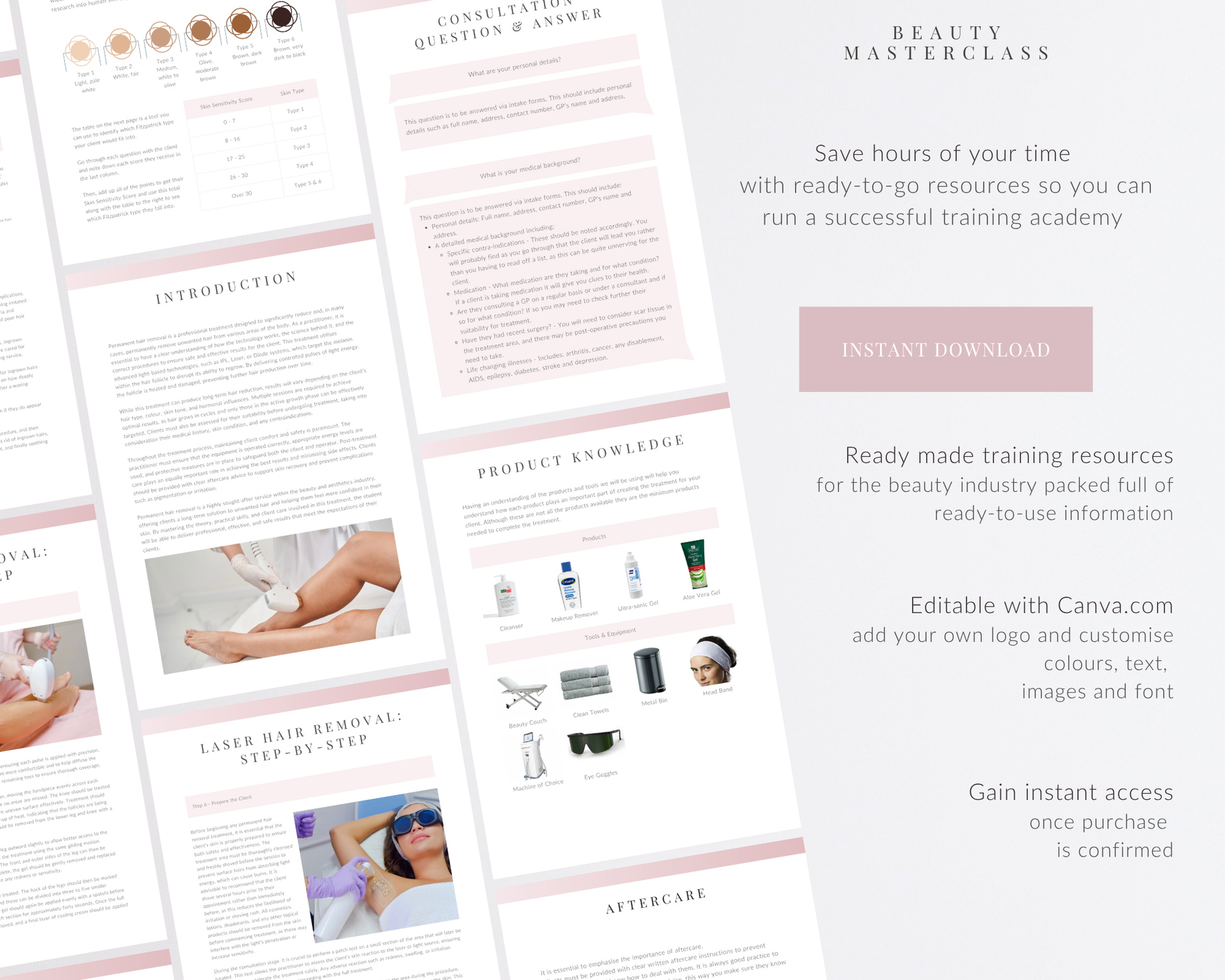 Transform your training academy with our premium editable beauty training resources, thoughtfully designed for beauty trainers, academies, and professionals. Our fully customisable Canva templates are the ultimate solution for creating professional, high-quality training materials, including manuals, worksheets, exams, and certificates. Each resource is easy to edit, instantly downloadable, and ready to personalise, helping you save time while presenting a polished and professional brand image.